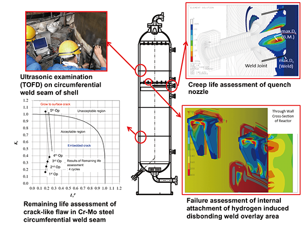 JSW carries out Fitness-For-Service assessment for various deterioration damages and provides solutions according to the damaged conditions based on the material data accumulated over many years and the latest evaluation technologies.