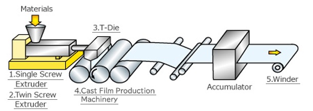 Sheet production line for barrier sheets and solar cell encapsulants.
